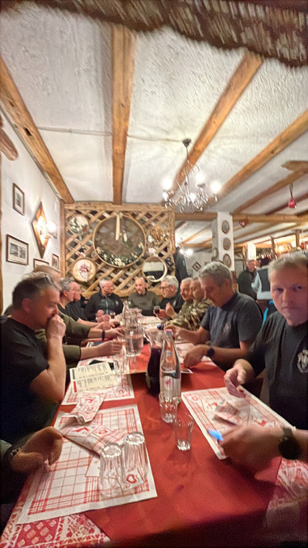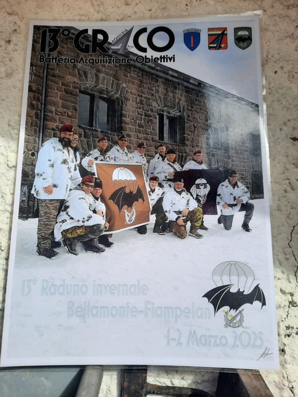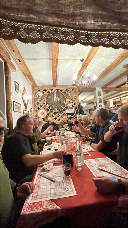 Finita l’attività, dopo un breve spostamento, ospitati nell’accogliente sede degli alpini di Predazzo, si consumava il pranzo farcito dai ricordi di chi ha comandato la “Batteria Acquisizione Obiettivi” per molti anni.