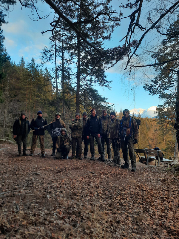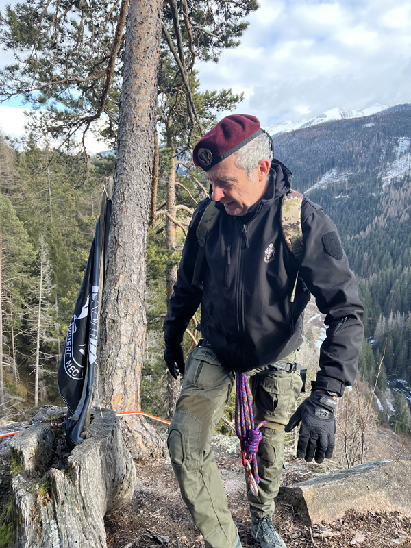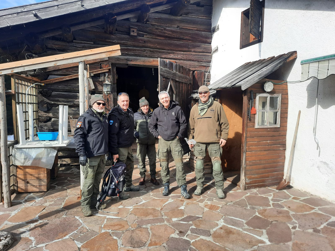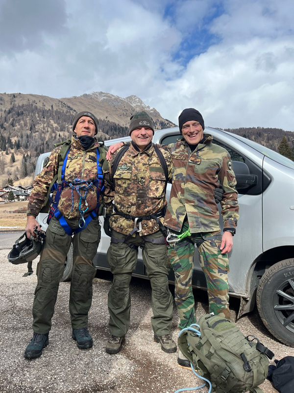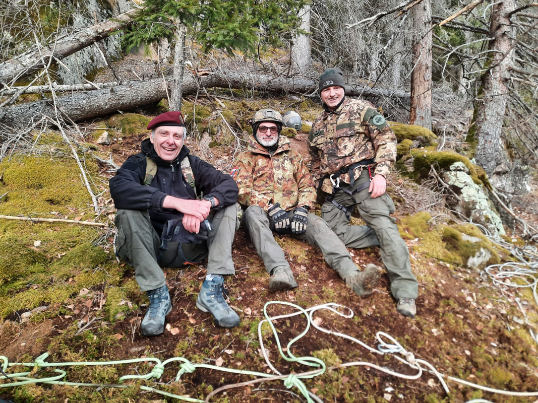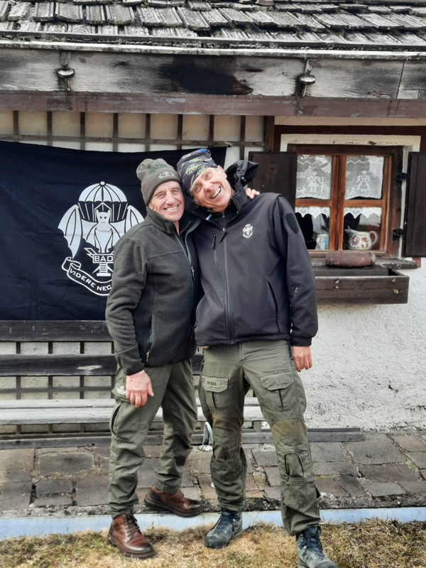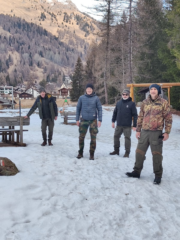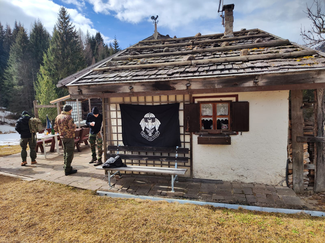 Dopo un breve debriefing sull’attività svolta, e indossata la tenuta da neve ci si avviava verso la malga Venegia, dove dopo un trasporto in motoslitta, ci si accomodava nell’accogliente malga gestita da un amico paracadutista per la cena calda.