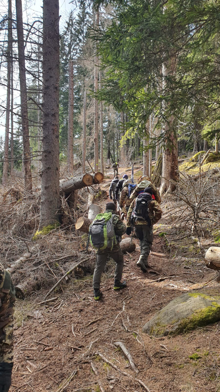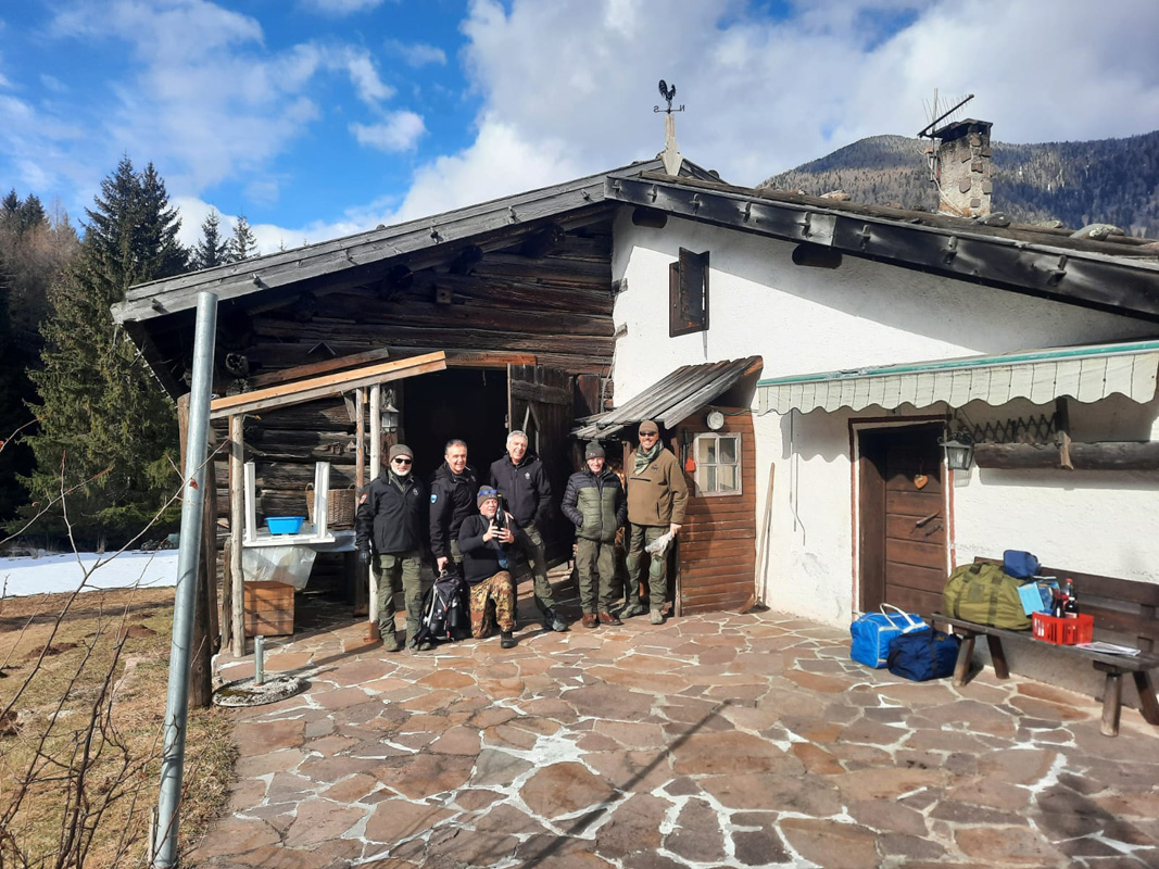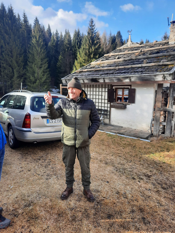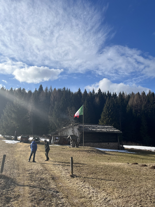l’assenza di neve non ci ha permesso il riparo su truna, è stato quindi necessario l’appoggio ad una baita ai confini del bosco poco prima dell’ingresso del centro abitato di Bellamonte.